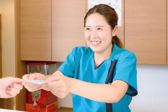 来院されましたら、保険証の提示、診察券の提示(再診の患者さまのみ)、予診票へのご記入をお願いします。