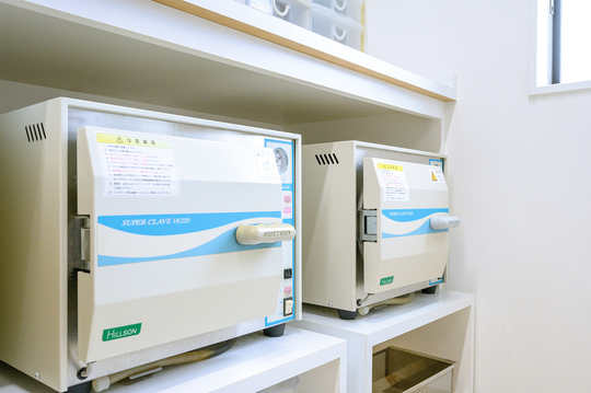 使い捨てにできない器具は、汚染の原因となる血液や唾液をしっかりと洗浄して、ヨーロッパ最高基準をクリアしたクラスB滅菌器で滅菌を徹底しています。