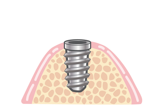 もしインプラントを埋め込む位置のあごの骨に、厚さ・高さなどが足りないと、治療を適応できない場合があります。インプラント治療を断られるケースのほとんどが、このような症例です。