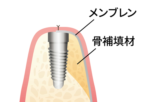インプラント治療を行うにあたり、骨に厚みや高さが足りない場合に実施する治療です。歯ぐきを切開し、骨が足りない部分に自分の骨、または人工の骨を注入し、メンブレンという専用の人工膜で覆って骨を再生します。